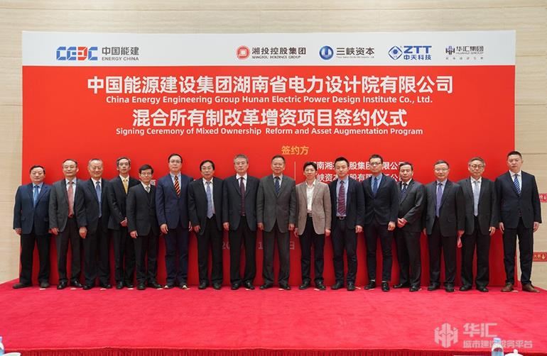 2020年1月8日,中國能源建設集團湖南省電力設計院有限公司混合所有制改革增資項目簽約儀式在北京中國能建總部舉行,華匯集團董事長袁建華出席簽約儀式,并與四家戰(zhàn)略投資者共同簽署增資入股協(xié)議。華匯集團正式作為戰(zhàn)略投資者入股中國能建湖南院。